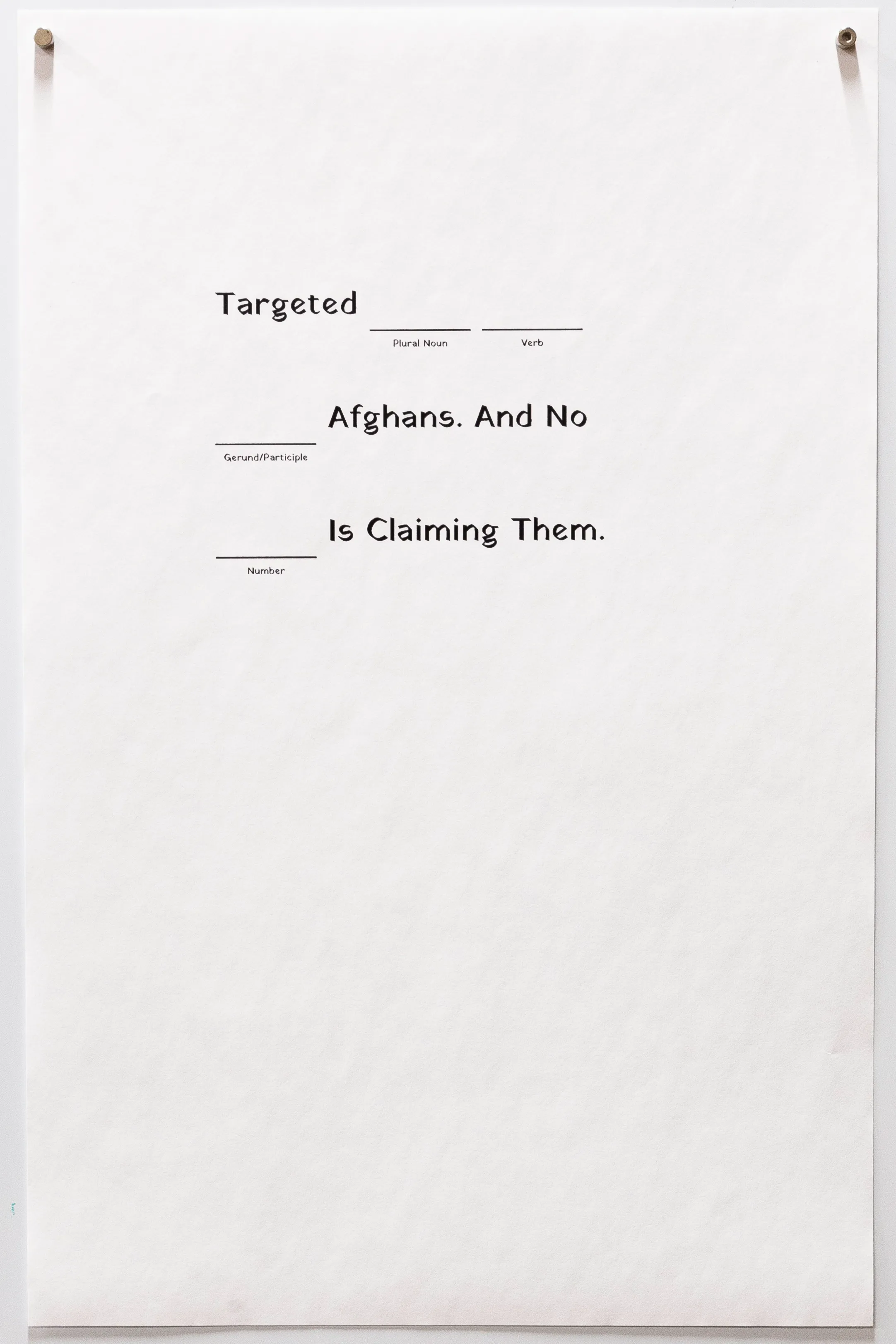 Materials: Bond Paper, Words, Custom Software, Patrons